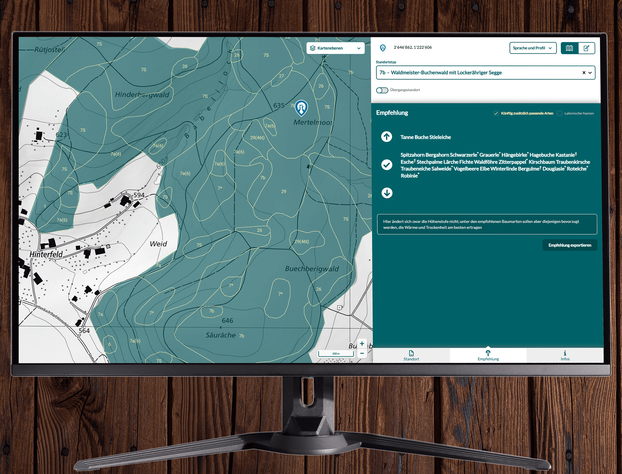 Die Eidgenössische Forschungsanstalt WSL stellt mit der Tree-App eine digitale Entscheidungshilfe bereit, die Waldbewirtschaftende bei der Wahl geeigneter Baumarten unterstützt. geOps hat die Anwendung als mobile Web-App umgesetzt. Die App ist wissenschaftlich fundiert, intuitiv nutzbar und direkt im Wald einsetzbar.